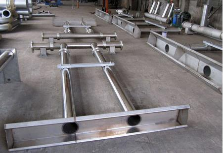 TBS型推杆旋转式滗水器主要由电机、变速箱、拉杆、浮桶、滗水器、滗水槽、活动关节、支座组成。全部采用不锈钢。当需滗水时,电机由自动系统操作,开始以一定的速度通过拉杆带动滗水槽接近水面。