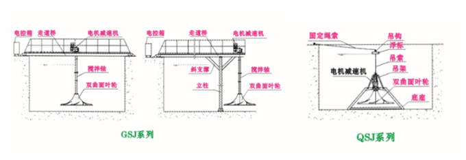 QSJ(潜水式)、GSJ(干式)型系列双曲面搅拌机是我公司引进国外技术开发的最新产品。它广泛地应用在环保、化工、能源、轻工业等行业对液体进行固、液、气混合搅拌的场合,尤其适用在污水处理工作中的混凝池、调节池、厌氧池、硝化和反硝化池。双曲面搅拌机由传动部件、叶轮、底座、吊装系统及电控组成。