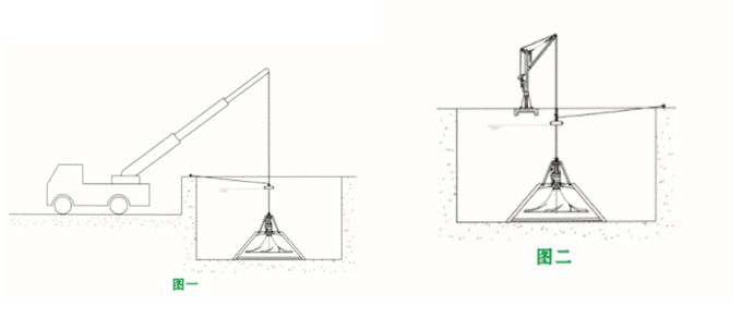 图二是通过池边设定的走道桥利用手动卷扬吊装。